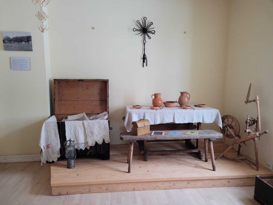 Atkurti minėtą istorinį laikmetį padeda eksponuojami buities – etnografijos eksponatai, dokumentai, fotografijos, senieji spaudiniai, surinkta laiko lokalinė medžiaga ir t.t.