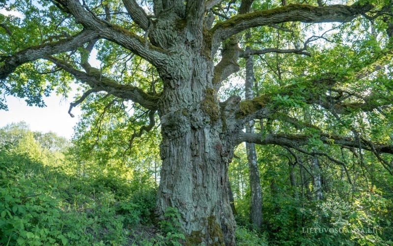 Didelis, stori ir aukšti ąžuolai nuo seno laikyti velnių buveinėmis. Sykį medinčius po girią vaikščiojo ir pradėjo lytie, graut ir mušt perkūnas. Jis po medžiu stovi ir žiūri – o netoli ąžuolas, jame skylė išpuvus. Kaip griausmas pereina, tai iš tos skylės išlenda vokietukas raudona kepuraite ir mečėjas prieš debesį, o kaip sugriauja tai tas vokietukas – in tą skylę. Kai perkūnas nesitrankydavo, velniai po ąžuolais linksmintis mėgdavo. Kaip tik gerai sutemė, prisirinko velnių po tuom aržuolu – ir šokt, tai šokt.
