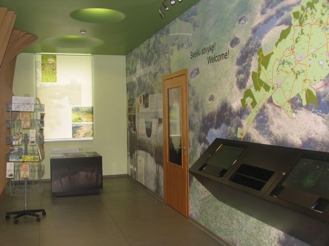 Biržų regioninio parko Lankytojų centre įrengta ekspozicija, supažindinanti su šios saugomos teritorijos išskirtinėmis vertybėmis. Pagrindinė ekspozicijos tema – „Prasmengančios žemės kraštas“, kadangi Biržų kraštas garsėja smegduobėmis, įgriuvomis, įdomiais geologiniais procesais.