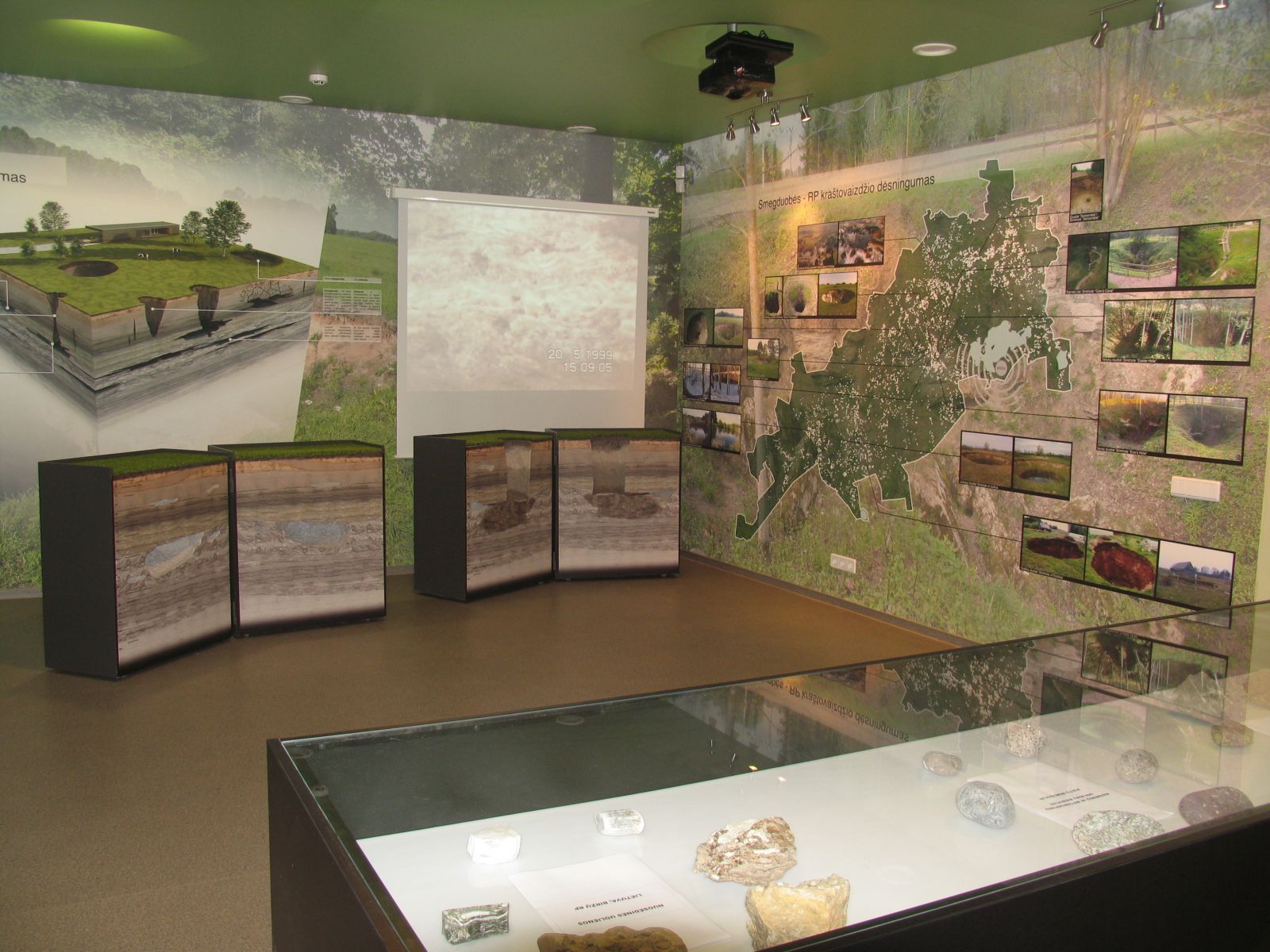 Biržų regioninio parko Lankytojų centre įrengta ekspozicija, supažindinanti su šios saugomos teritorijos išskirtinėmis vertybėmis. Pagrindinė ekspozicijos tema – „Prasmengančios žemės kraštas“, kadangi Biržų kraštas garsėja smegduobėmis, įgriuvomis, įdomiais geologiniais procesais.