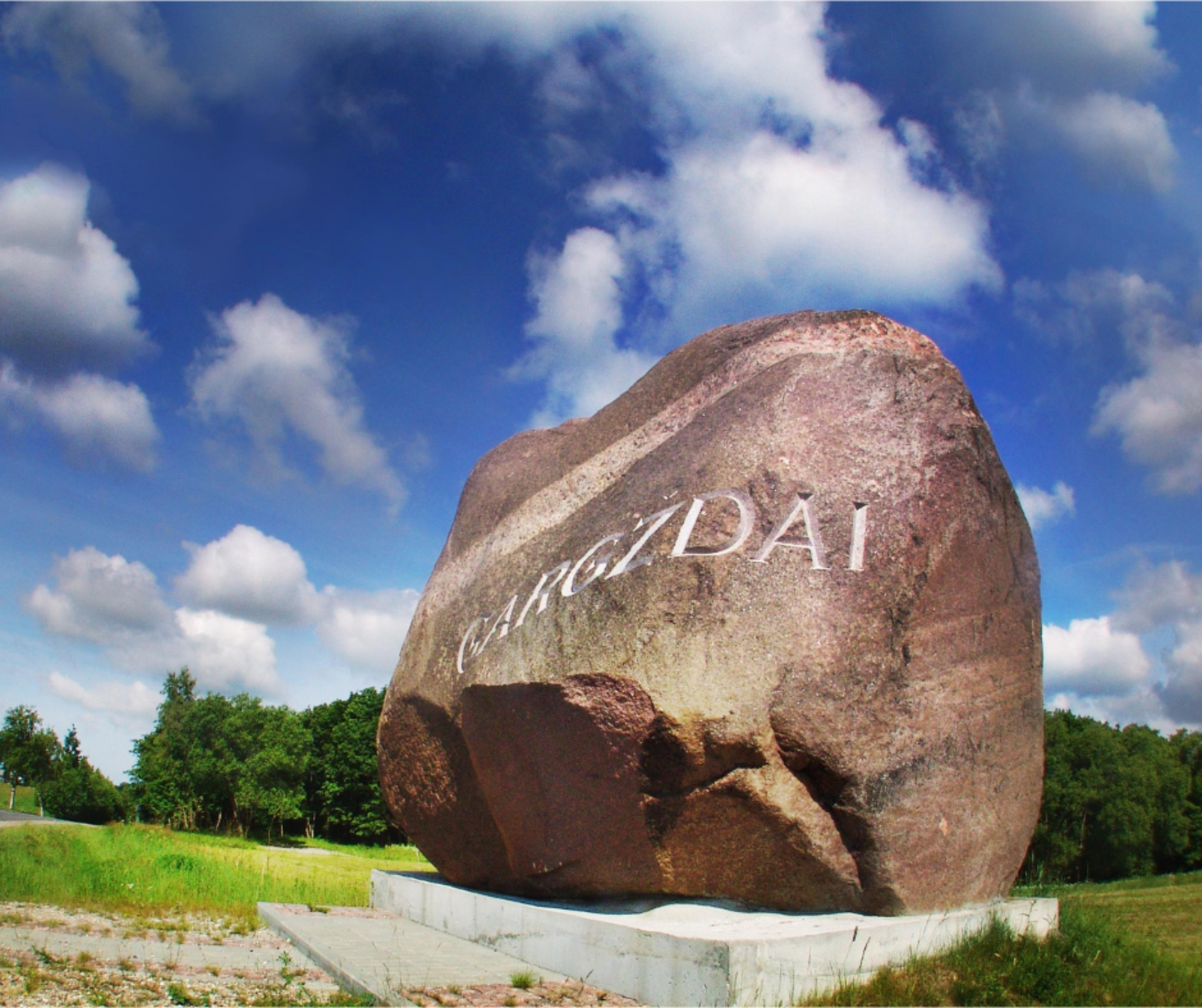 Įvažiavimą į Gargždus iš rytinės pusės puošia net 100 tonų sveriantis akmuo su užrašu „Gargždai“. Jis stūkso šalia Kalniškės (Gargždų) piliakalnio, Dauparai-Gargždai-Vėžaičiai ir Macuičiai-Pėžaičiai kelių kryžkelėje.