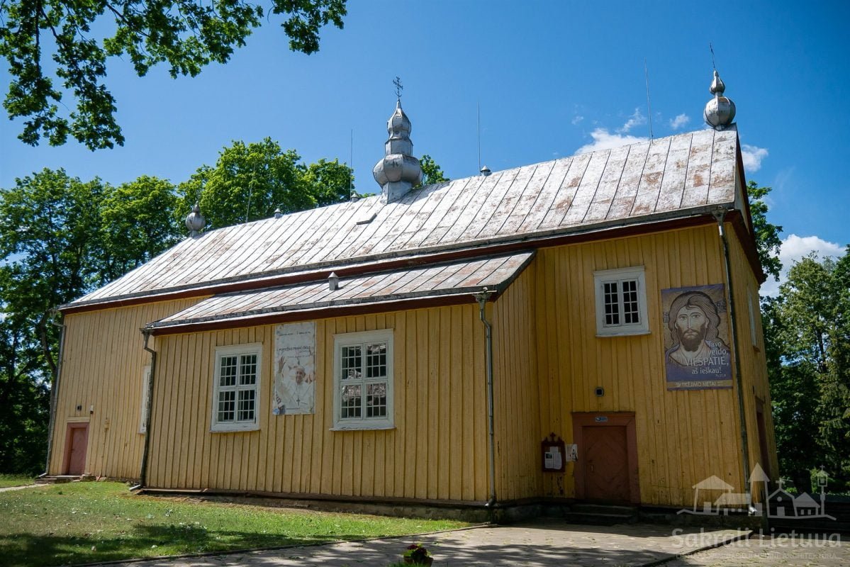 Bažnyčios pastatas liaudiško stiliaus, stačiakampio plano, trinavis su stačiakampe apside, dešinės navos erdvę pratęsia zakristija. Po presbiterija įrengtas rūsys. Bažnyčios fasadai apkalti vertikaliomis lentjuostėmis, virš cokolio statinį visu perimetru juosia medinės lentos, pastogėje – medinis profiliuotas karnizas. Langai stačiakampiai su profiliuotais apvadais, palangėmis, sandrikais. Pietiniame fasade – Kryžius su Nukryžiuotojo skulptūra. Stogo centre, virš pagrindinio fasado ir zakristijos įrengti dekoratyvūs pūstų formų bokšteliai su apskardintais šalmais, užsibaigiantys metaliniais ornamentuotais kryžiais. Pagrindinio įėjimo durys medinės dvivėrės, dvisluoksnės, iš išorės apkaltos rombo raštu, metaliniais vyriais ir mediniais profiliuotais apvadais.