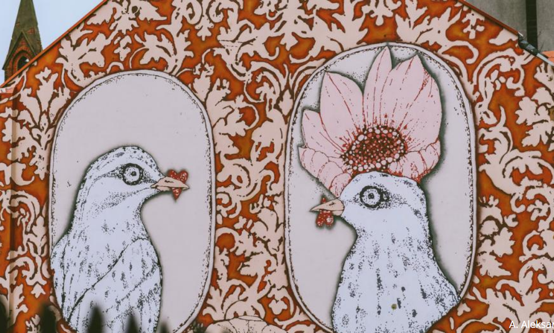 Nuostabu, kad ši freska perkelta iš 10 × 10 cm apimties grafikos darbo. Žemųjų Šančių širdyje nutūpę du balandžiai simbolizuoja draugystę ir bendrystę. Gražvyda Andrijauskaitė, 2016 m.