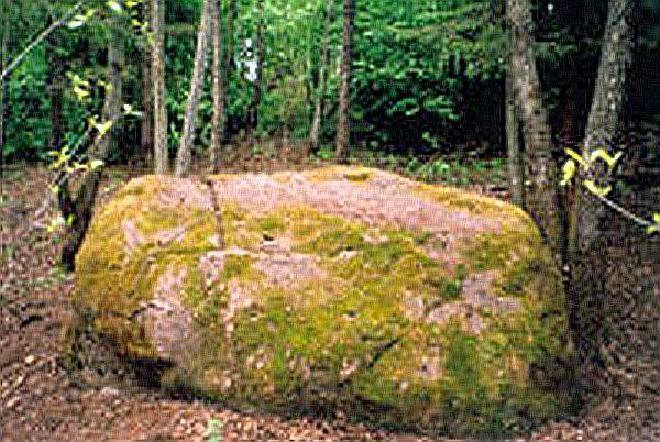 Tai didžiulis rausvo granito 5x4m, kiek įdubusia viršutine dalimi riedulys su neaiškiais ženklais pietinėje pusėje. Akmens aukštis –1,5 m. Dėl savo didumo akmuo vadinamas ,,Pirtimi”. Prie akmens anksčiau buvęs šaltinis, žmonių vadinamas stebuklingu.