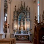 Bažnyčios viduje galima pamatyti unikalų, legendomis apipintą autentišką XIX amžiaus jaunamarčių juostų kilimą, kuris laikomas unikaliu kultūriniu paveldu. Anksčiau būta tradicijos prieš vestuves jaunamartėms nuausti juostą, kuri būtų padovanojama bažnyčiai. Iš 64 tokių juostų vėliau ir buvo surištas kilimas. Pasak legendos, kam nesiseka susirasti poros, reikia pastiprinimo meilės reikaluose arba trūksta santarvės šeimoje, užtenka ateiti ir prisiliesti prie šio kilimo.