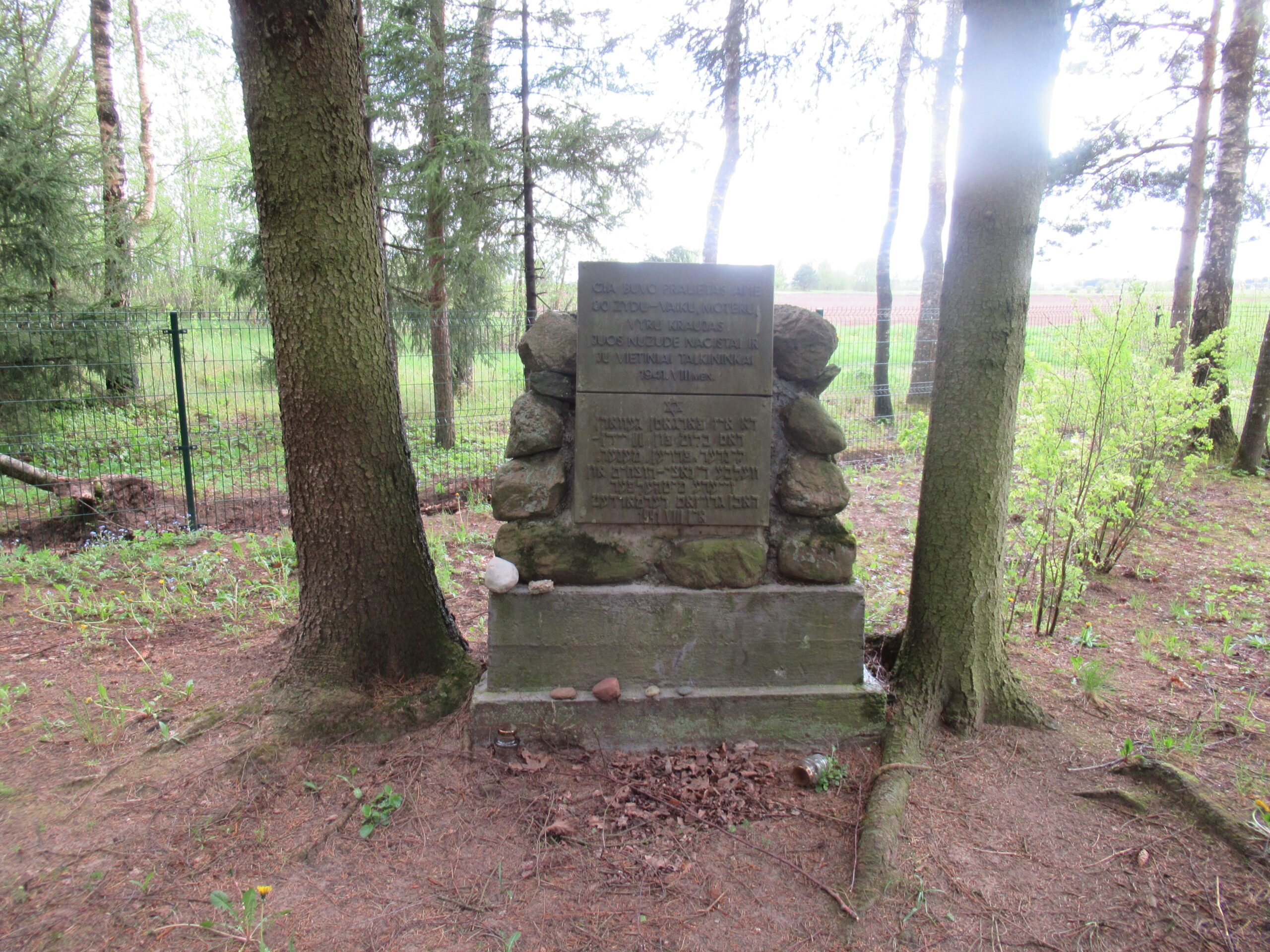 1941 m. rugpjūčio mėn. čia nužudyta apie 80 Nemunėlio Radviliškio žydų. Piramidės formos paminklo antkapinėje plokštėje pritvirtintos metalinės plokštės su tekstais lietuvių ir hebrajų kalbomis „Čia buvo pralietas apie 80 žydų - vaikų, moterų ir vyrų kraujas. 1941 m. juos nužudė nacistai ir vietiniai talkininkai.“