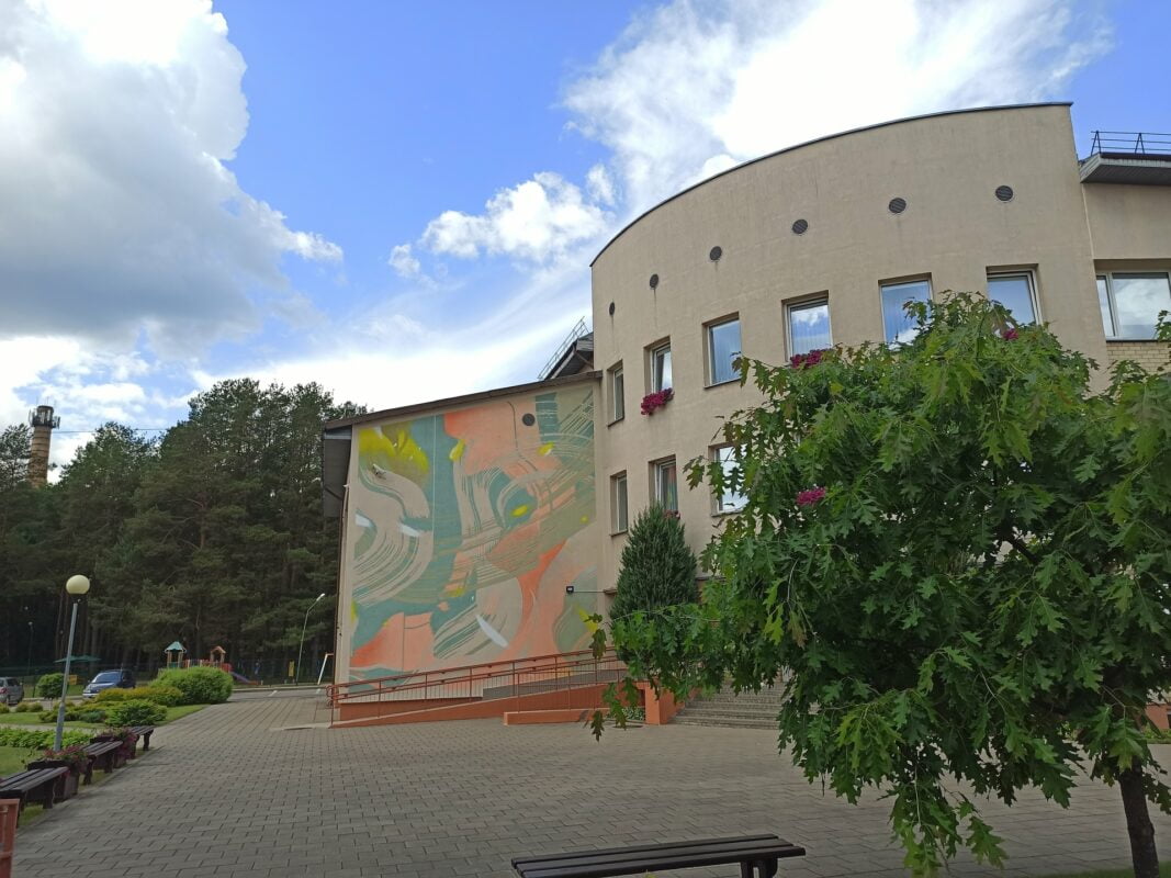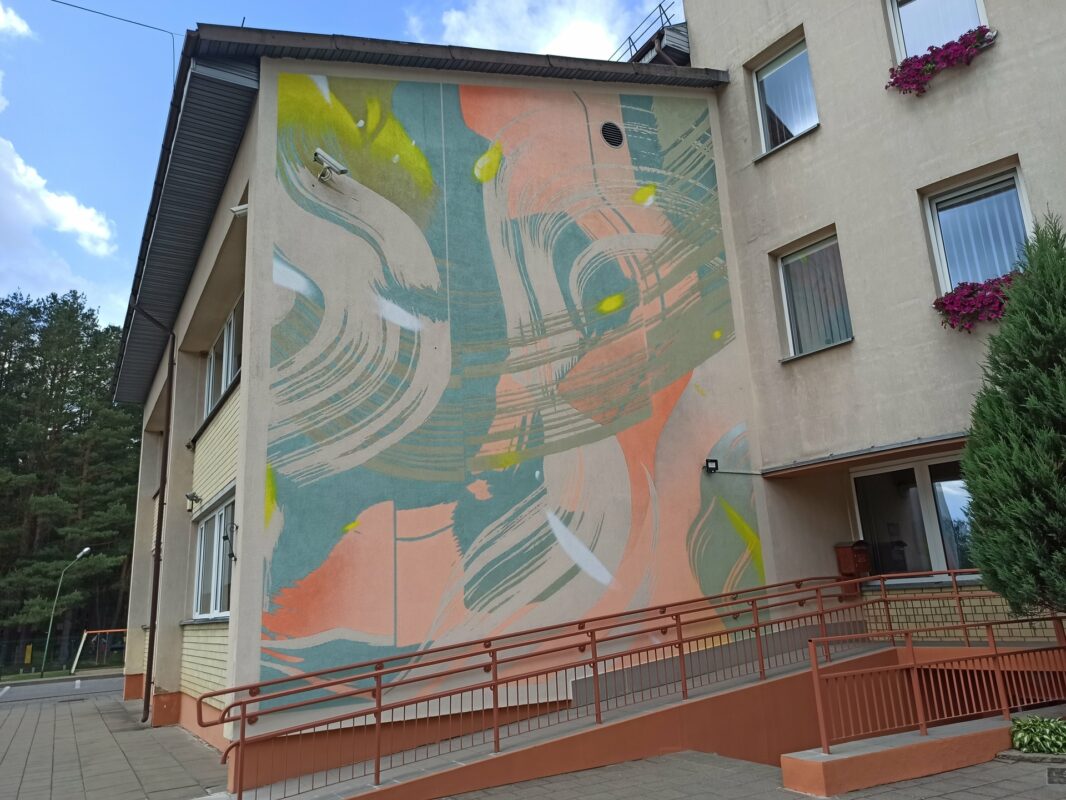 Dar viena ištapyta siena papildė Ignalinos miesto galeriją po atviru dangumi. Šį sykį tai ne tik dailininko Tado Vincaičio-Plūgo išpildymas, bet ir jo paties kūrinys. Abstrakcija savo spalvų deriniu atkartoja aplinkoje esantį spalvyną ir darniai įsilieja į bendrą Ignalinos Česlovo Kudabos gimnazijos pagrindinio įėjimo vaizdą.