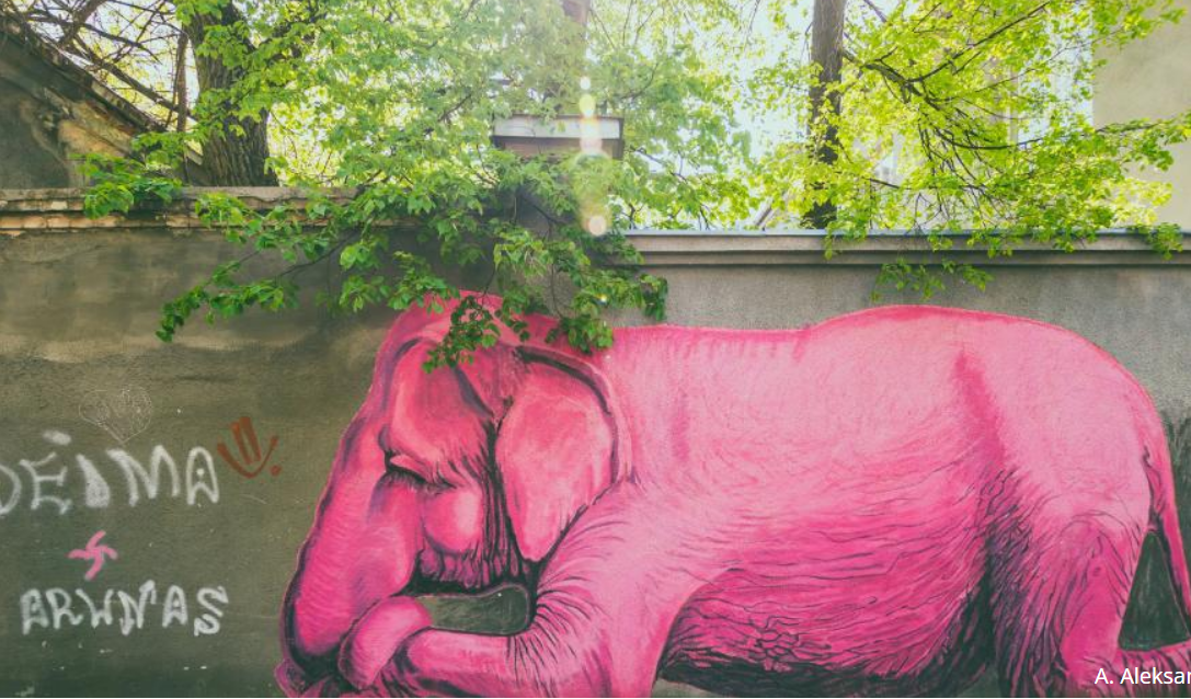 Šio dramblio atsiradimą įkvėpė ant sienos esantis užrašas „Deima + Arūnas“. Meilė nugali viską, net ir požiūrį į sienų „taršalus“ – tagus, tiesa? Vytenis Jakas, 2014
