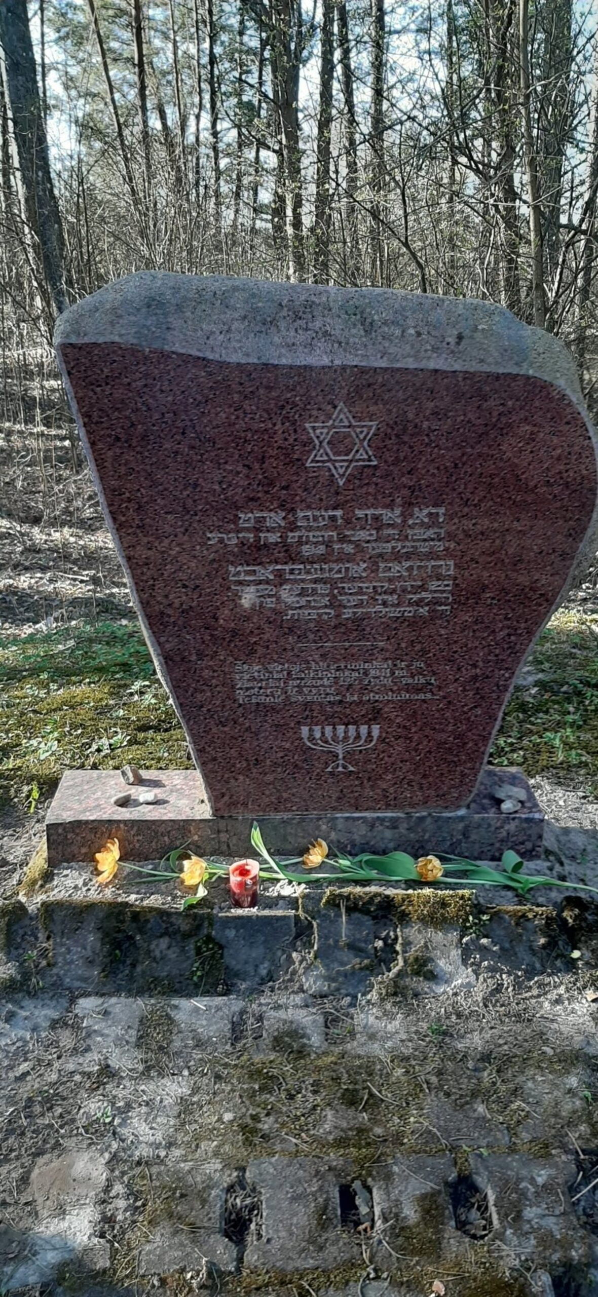 Šali Ūsių ežero stovi paminklinė lenta, skirta šioje vietoje nužudytiems žydams. 1941 m. liepos mėn. nacistinės Vokietijos valdžios suorganizuotos egzekucijos metu nužudyta 70 (ant memorialinio paminklo nurodyta 120) Linkmenų mstl. žydų - vyrų, moterų ir vaikų. Žmonės buvo užkasti 3 duobėse. Apie 1961 m. nužudytųjų palaikai buvo atkasti, sukrauti į kelis karstus ir perlaidoti Švenčionėliuose. Ši vieta įtraukta į Nekilnojamųjų kultūros vertybių registrą.