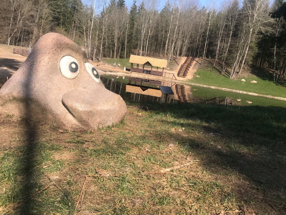 Retas kuris pažintinis takas yra taip apgyvendintas – čia galima sutikti ir Maumą, ir Zuikių dievą, ir Ežerinį. Viso Šventos miške - 17 senųjų lietuvių dievų bei mitologinių būtybių.