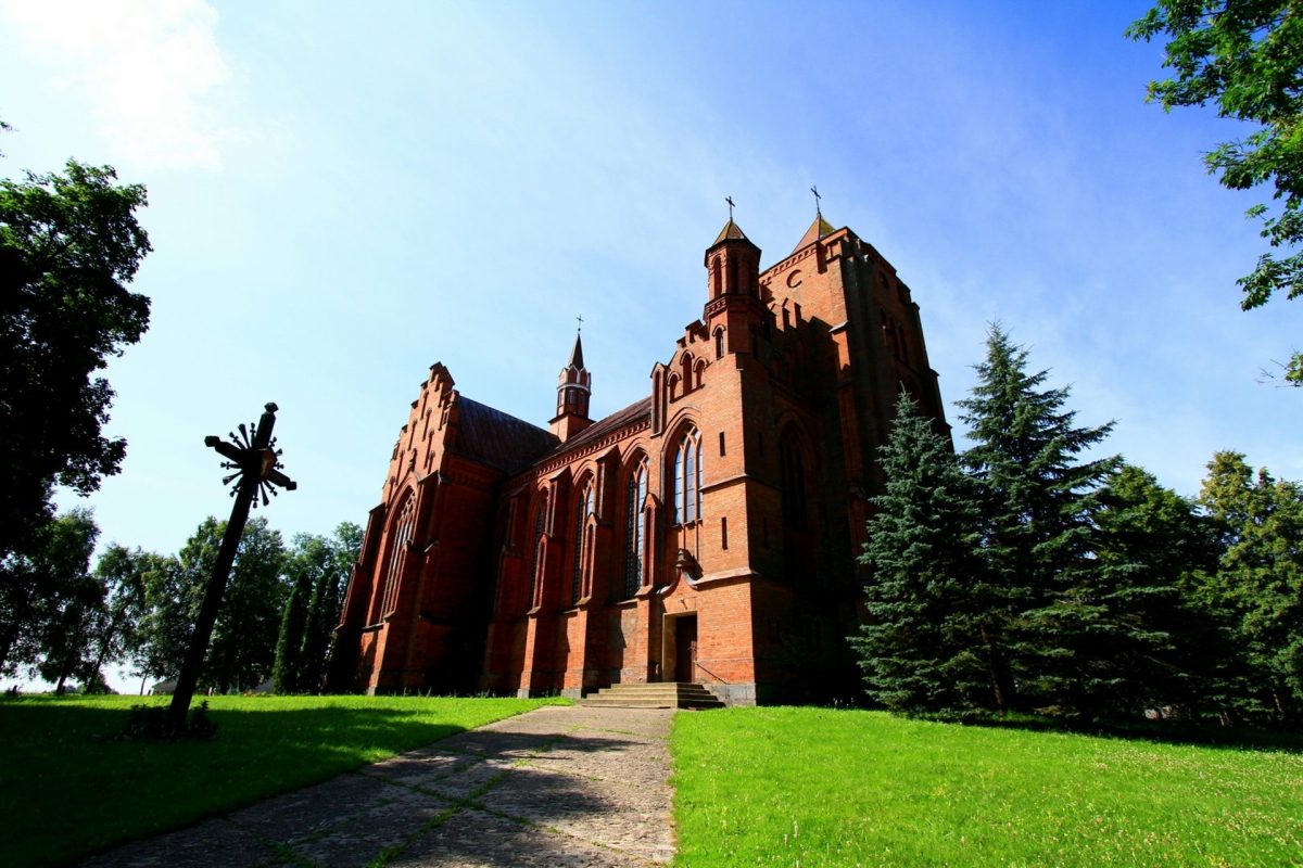 Mūrinė bažnyčia pagal Juzefo Pijušo Dziekonskio projektą už 70 000 rublių pastatyta 1910 m. Bažnyčia neogotikinė, lotyniško kryžiaus plano, vienabokštė su bokšteliais, įrengti 4 altoriai.