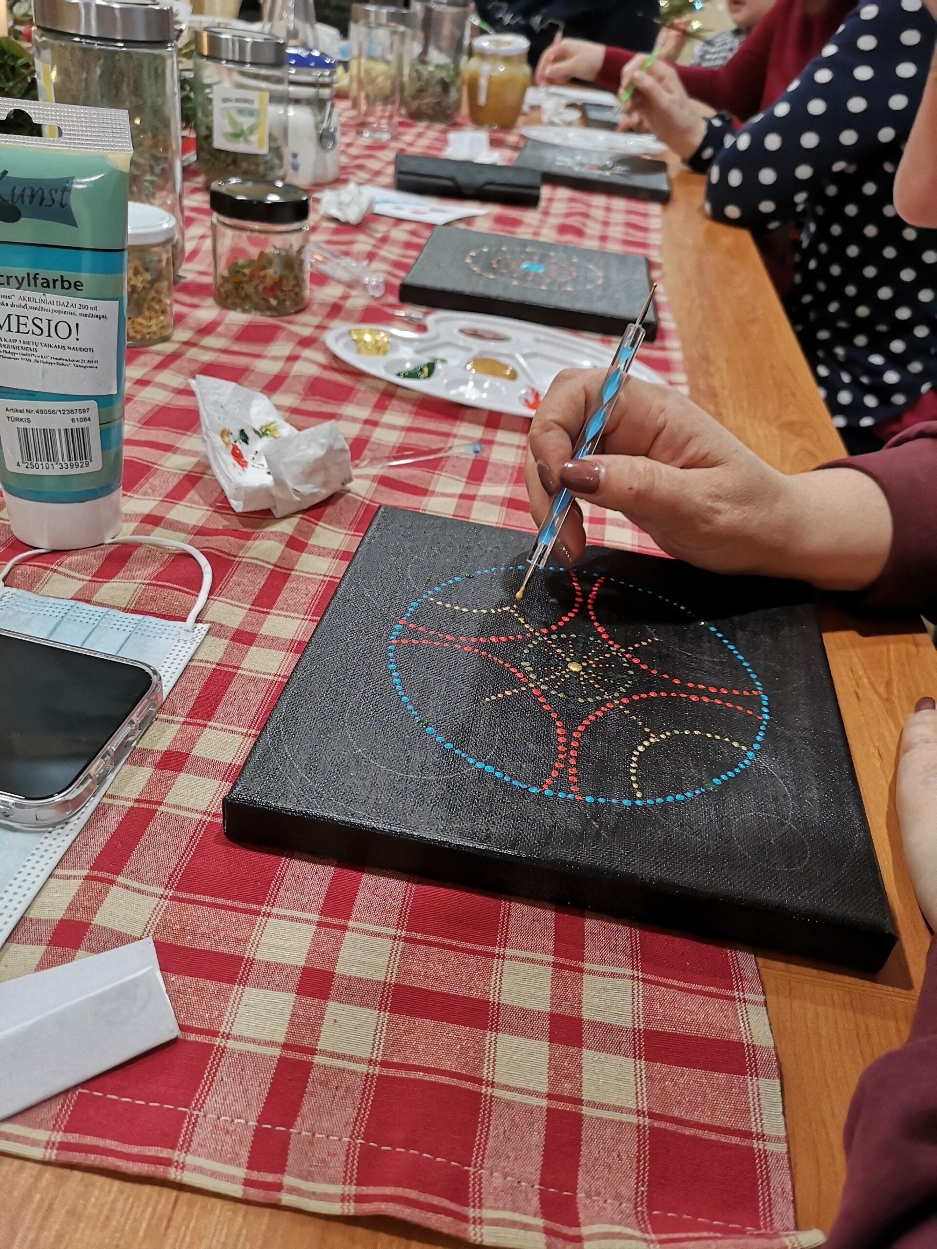 Atvykę į Laumės sodybą, už jos vartų paliksite kasdienius rūpesčius ir pasirengsite nustebinti patys save. Edukacijos metu, atsipalaiduosite bei pasinersite į savo vidinį pasaulį bei kūrybos procesą. Beliks patiems pasirinkti taškavimo būdą: ant drobės, puodelio, o galbūt ant kalėdinio žaisliuko. Ką bepasirinktumėte, neabejotinai kiekvienas iš edukacinio užsiėmimo išsinešite nuostabaus grožio kūrinį!