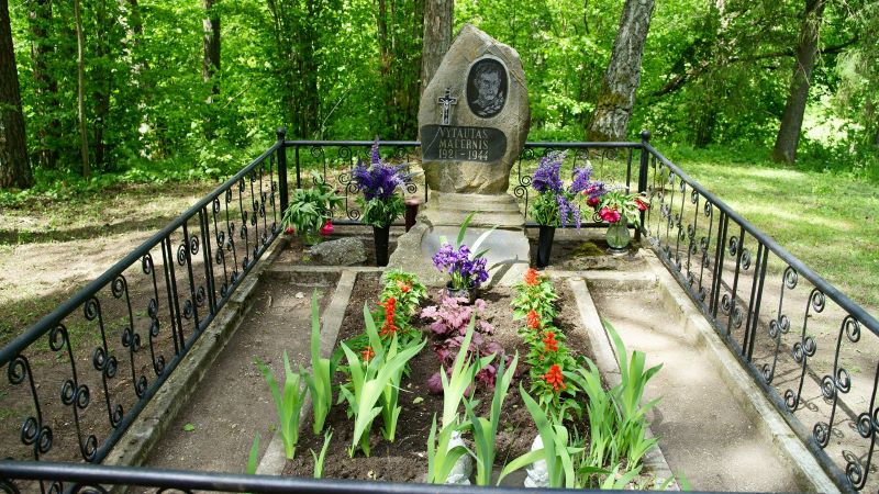 Čia palaidotas 1944 m. Žemaičių Kalvarijoje nuo sviedinio skeveldros žuvęs poetas V. Mačernis. Artimieji velionį išsivežė atgal į Šarnelę, kur ir palaidojo - vidurį laukų, tėviškės laukelyje, kurį jis buvo labai pamėgęs, tarp aukštų pušų, eglių ir ąžuolų, kur dažnai ateidavo.